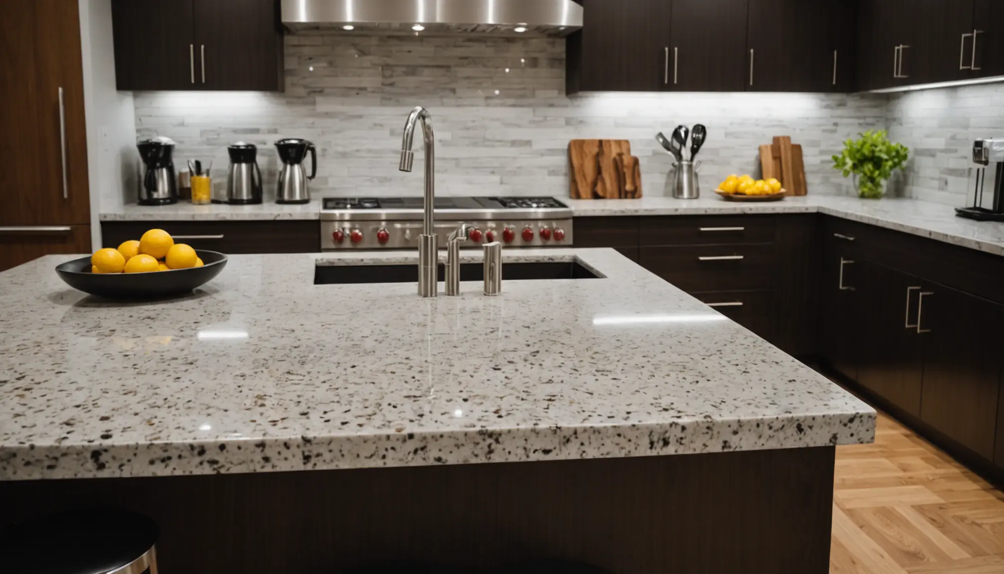 Quand on parle de raffinement et de solidité, le quartz et le granit se démarquent avec brio. Ces matériaux règnent en maîtres sur la durabilité, prêts à faire face à la chaleur et aux taches, tout en ajoutant une touche de luxe à votre espace. Toutefois, ce luxe a un prix, et leur poids considérable peut nécessiter de renforcer votre mobilier sous-jacent.